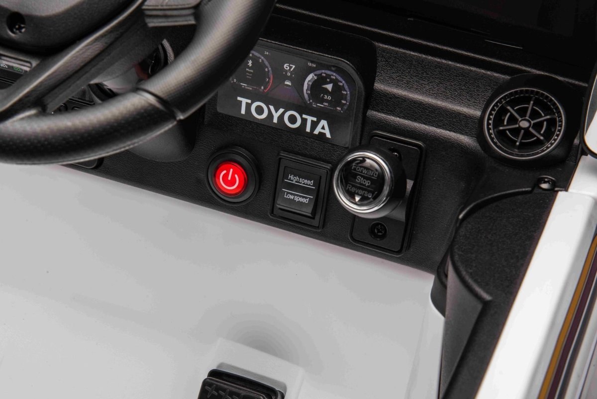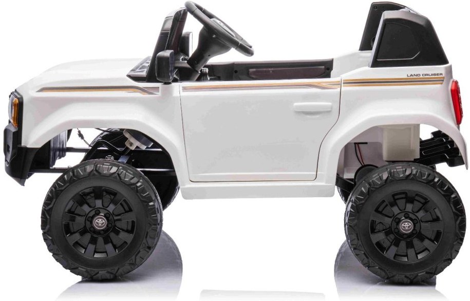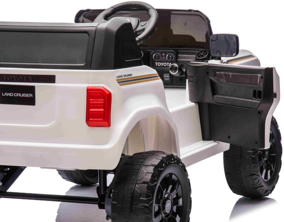 Najnovší model Toyota Land Cruiser pre deti spája luxusný vzhľad a moderné technológie v jednom. Precízne spracovaný dizajn dopĺňajú atraktívne funkcie ako MP3 prehrávač s USB/AUX vstupom a Bluetooth pripojením, pričom hlasitosť všetkých zvukových efektov sa jednoducho ovláda priamo na prehrávači. Samozrejmosťou je aj prehrávanie hudby, predné LED osvetlenie a ukazovateľ stavu kapacity batérie, ktorý informuje o zostávajúcej kapacite vo voltoch.Multifunkčný volant