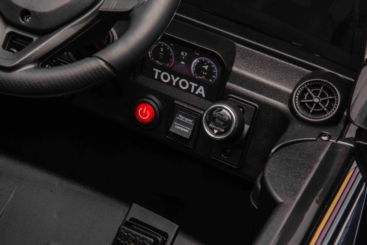 Najnovší model Toyota Land Cruiser pre deti spája luxusný vzhľad a moderné technológie v jednom. Precízne spracovaný dizajn dopĺňajú atraktívne funkcie ako MP3 prehrávač s USB/AUX vstupom a Bluetooth pripojením, pričom hlasitosť všetkých zvukových efektov sa jednoducho ovláda priamo na prehrávači. Samozrejmosťou je aj prehrávanie hudby, predné LED osvetlenie a ukazovateľ stavu kapacity batérie, ktorý informuje o zostávajúcej kapacite vo voltoch.Multifunkčný volant