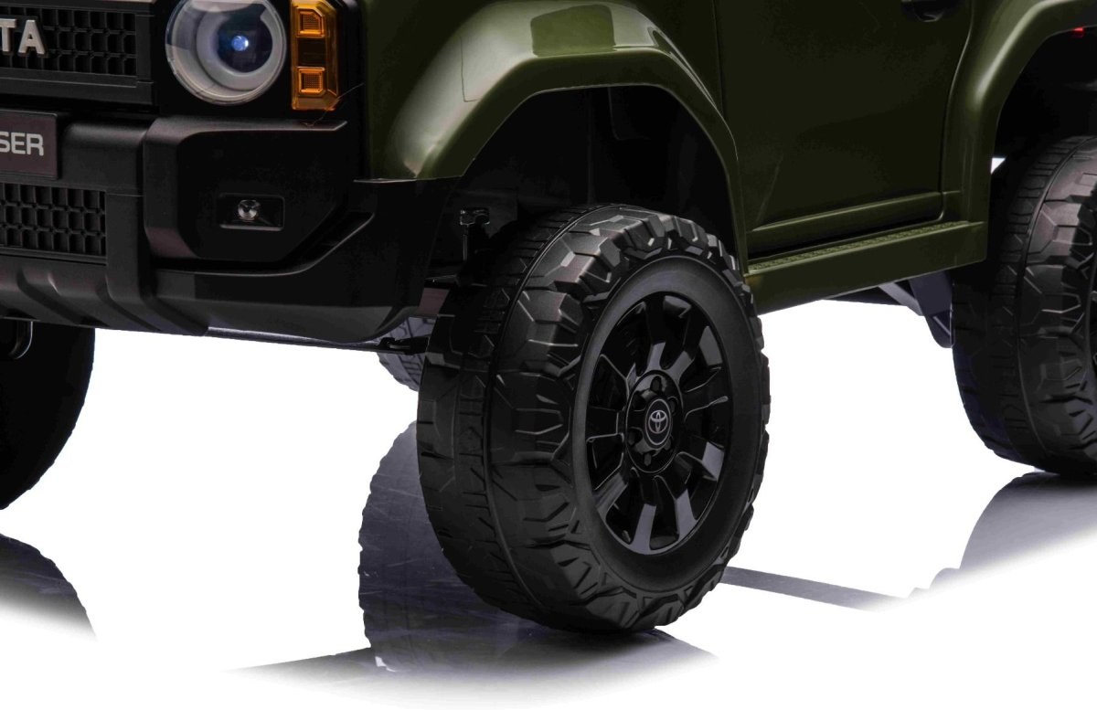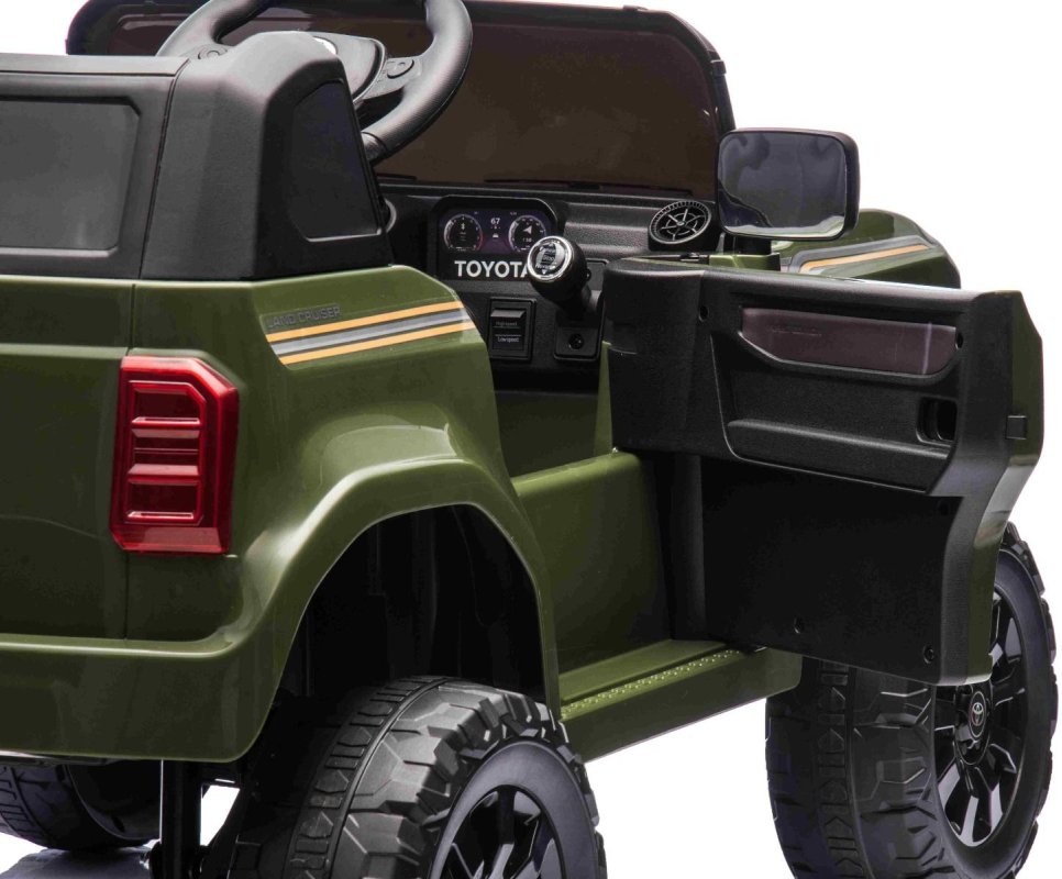 Najnovší model Toyota Land Cruiser pre deti spája luxusný vzhľad a moderné technológie v jednom. Precízne spracovaný dizajn dopĺňajú atraktívne funkcie ako MP3 prehrávač s USB/AUX vstupom a Bluetooth pripojením, pričom hlasitosť všetkých zvukových efektov sa jednoducho ovláda priamo na prehrávači. Samozrejmosťou je aj prehrávanie hudby, predné LED osvetlenie a ukazovateľ stavu kapacity batérie, ktorý informuje o zostávajúcej kapacite vo voltoch.Multifunkčný volant