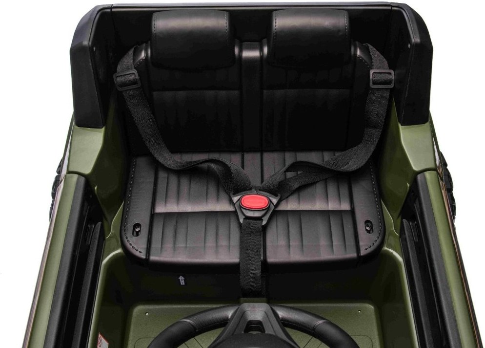 S tlačidlami na ovládanie klaksónu a prepínanie hudby.Autíčko je vybavené 2,4 GHz diaľkovým ovládaním novej generácie s osvetleným štartovacím spínačom na jedno tlačidlo. O bezpečnosť sa stará núdzová brzda na ovládači, ktorá v prípade potreby okamžite deaktivuje všetky funkcie, a tak rodič získava plnú kontrolu nad jazdou. Nechýba ani bezpečnostný pás, ktorý poskytuje istotu pri jazde.