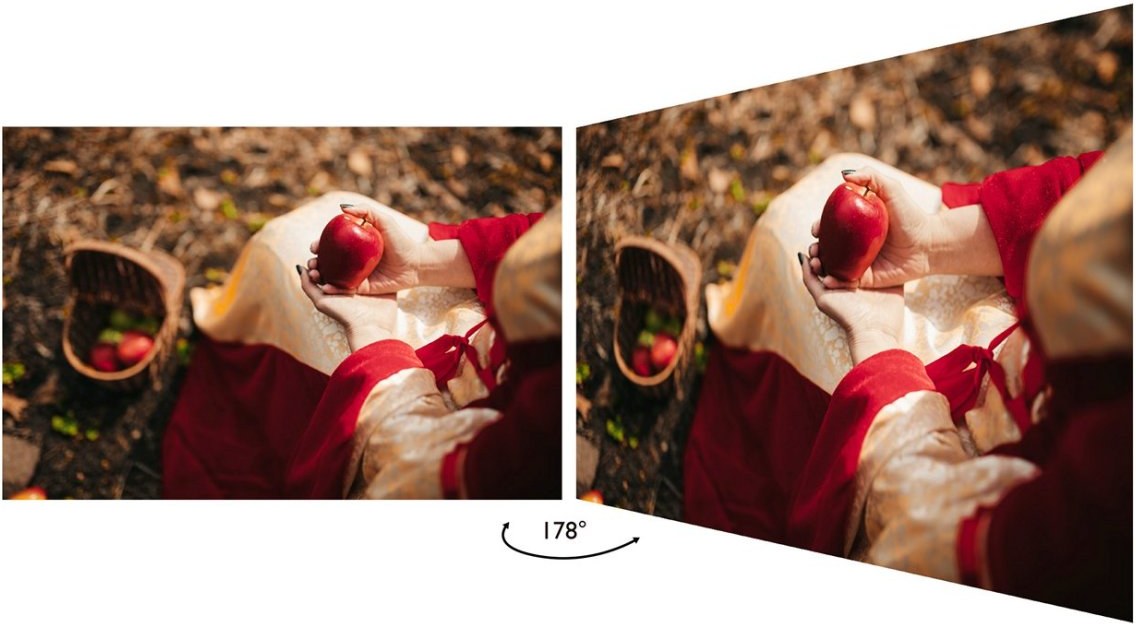 21,5” IPS panel s rozlíšením Full HD (1920×1080px) ponúka živé farby a pozoruhodné pozorovacie uhly 178° horizontálne aj vertikálne. S jasom 250 cd/m2 a kontrastom 1000:1 (dynamický 20 000 000:1) dosahuje výborný farebný výkon, kvalitu obrazu a hĺbku čiernej. Reakčný čas 5 ms (GtG) zabezpečuje plynulý vizuálny zážitok bez výrazného rozmazania v bežných aplikáciách.