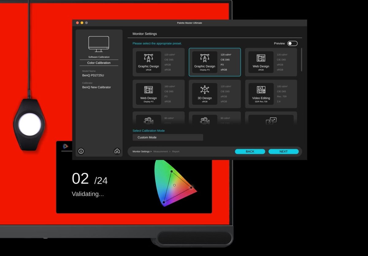 Na rozdiel od bežných monitorov umožňuje BenQ PV3200U priamu hardvérovú kalibráciu. To znamená, že nastavenia farieb sa ukladajú priamo do procesora monitora a nie do grafickej karty počítača, čo zaručuje dlhodobú stabilitu a konzistenciu obrazu. Súčasťou softvérovej výbavy je nástroj Palette Master Element, ktorý v spojení s voliteľným kalibrátorom zjednodušuje proces udržiavania špičkového výkonu monitora. Jas a farby sú navyše rovnomerne distribuované po celej ploche displeja vďaka technológii Brightness Uniformity.