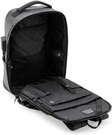 Batoh s polstrovanými priehradkami pre tablety a notebooky do 15,6".Tri veľké predné kapsy.
