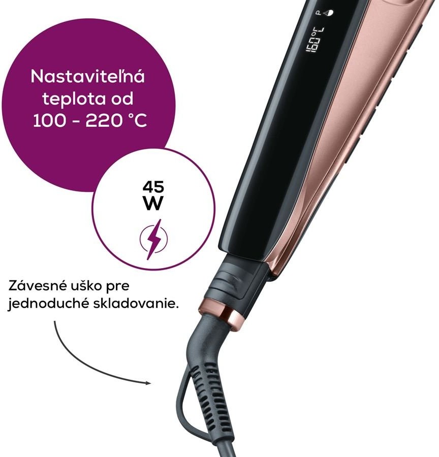 žehlička na vlasy, nastaviteľná teplota od 100 - 220 °C, rozmery: 31 x 3,2 x 3,8 cm, odolné púzdro pre bezpečné skladovanie a prenášanieZobraziť viac