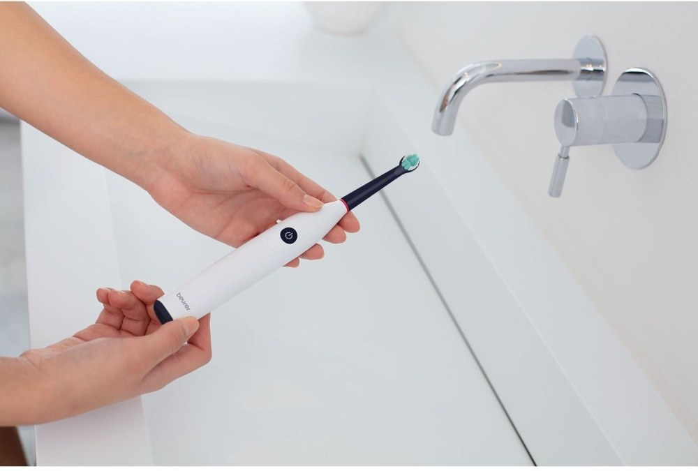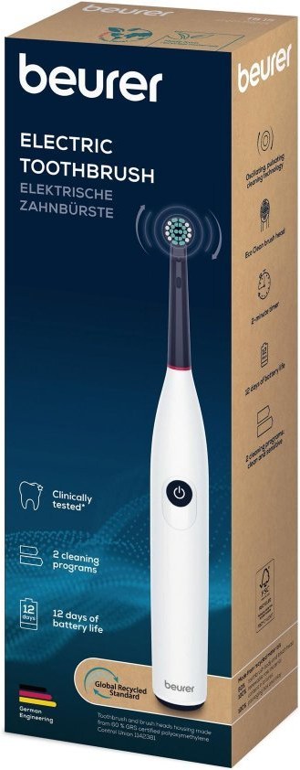 Elektrická zubná kefka TB15 od nemeckého špecialistu Beurer bude vaším spoľahlivým partnerom pre dokonalú ústnu hygienu. Táto zubná kefka sa automaticky vypne po skončení čistiaceho cyklu, čo zabezpečuje pohodlné a efektívne používanie. LED kontrolka informuje o stave batérie, takže vždy vieš, kedy je čas na dobitie. Vďaka kombinácii udržateľných materiálov a modernej technológie ponúka ekologické riešenie bez kompromisov na výkone.