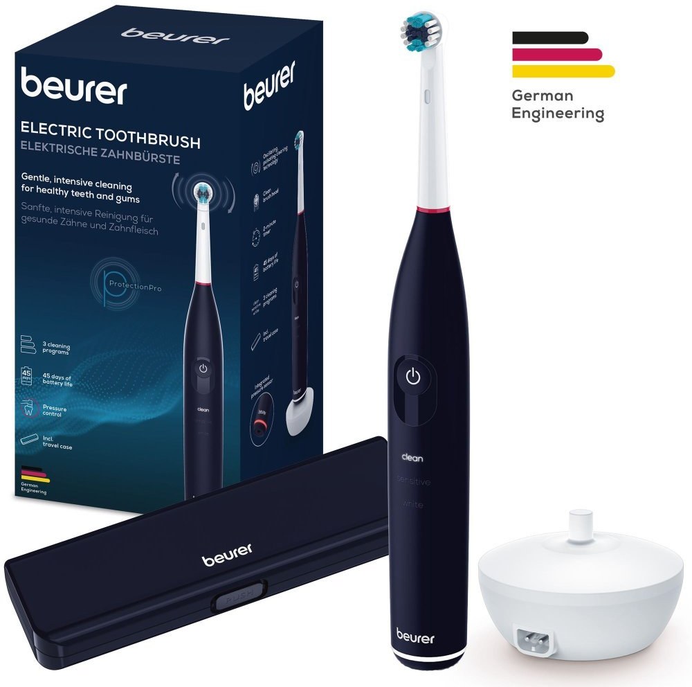Elektrická zubná kefka BEURER TB50 splní všetky želania. Táto kefka má integrovaný tlakový senzor na ochranu zubov a ďasien a jej výkonná batéria má výdrž až 45 dní. Súčasťou balenia je aj praktický cestovný a úložný box. Pre ten najlepší komfort na cestách. S trojicou individuálnych programov čistenia - Clean, Sensitive a White, sa táto kefka postará o vaše zuby s osobným prístupom.