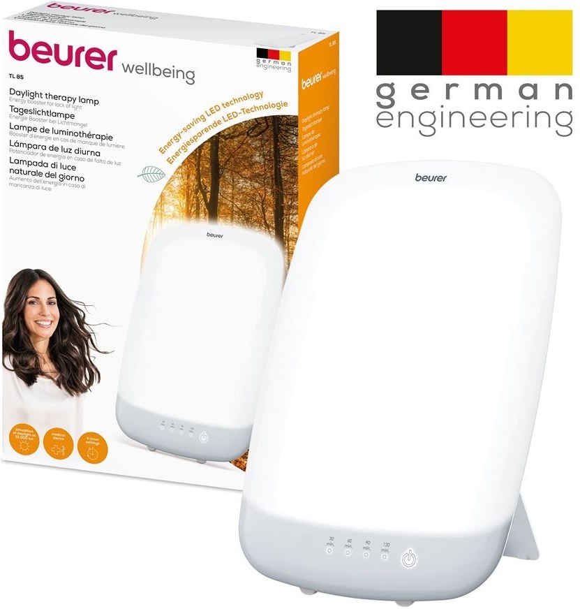 Terapeutická lampa s denným svetlom BEURER TL85 vás zaujme svojou inovatívnou svetelnou technológiou, ktorá zaisťuje rovnomerné rozloženie svetla. Vďaka odnímateľnému stojanu je lampa mimoriadne úsporná a skutočne upúta pozornosť v každej domácnosti. Získajte chýbajúce denné svetlo jedným dotykom. Pre pohodu aj v mesiacoch s menším slnečným žiarením.,