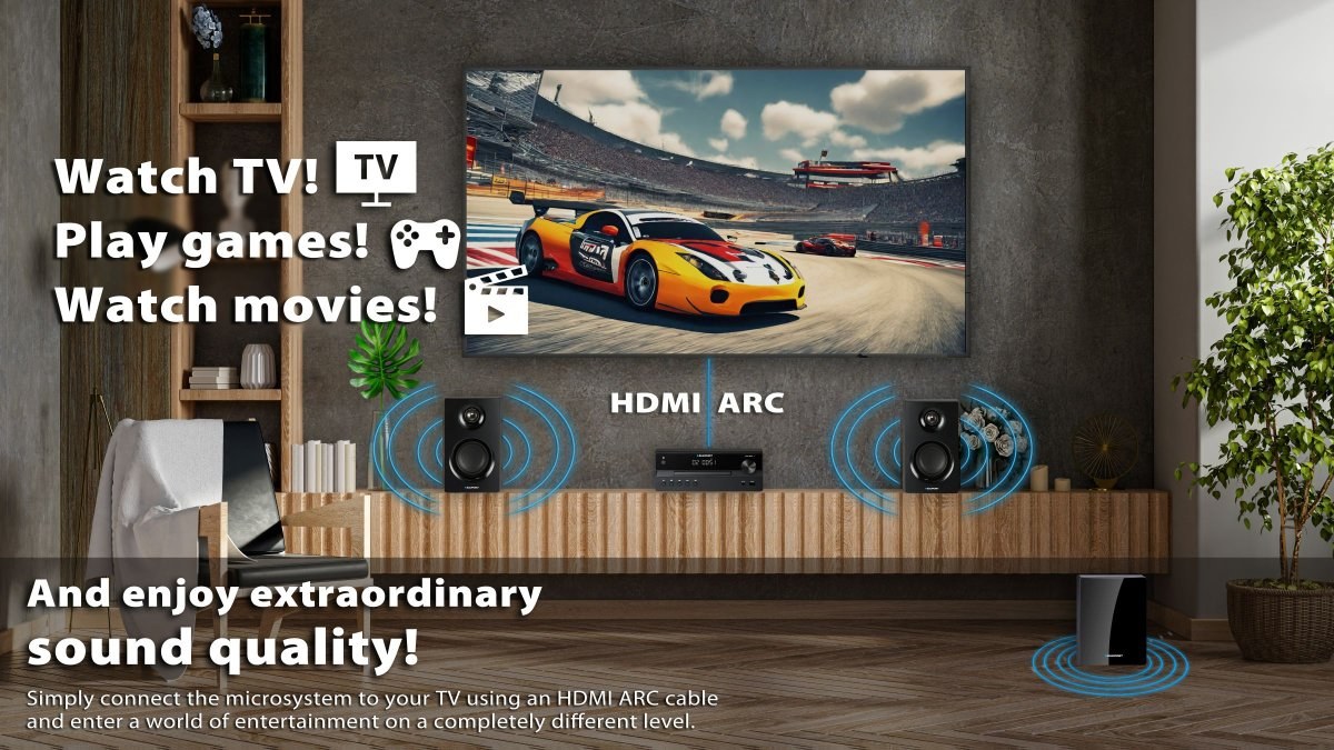 ARC je skratka pre Audio Return Channel (spätný audio kanál). Na čo slúži? Najjednoduchšie vysvetlenie je, že budete môcť prenášať signál dvoma smermi – z periférneho zariadenia do televízora a naopak. Čo to znamená? Jeden kábel menej v celom ich spletitom zväzku, pretože nepotrebujete žiadne ďalšie káble na prenos audio signálu, ak chcete zlepšiť zvuk svojho televízora.Mikrosystém vybavený portom HDMI ARC sa môže stať súčasťou domáceho zábavného centra. Pripojte ho k televízoru a objavte nové možnosti!