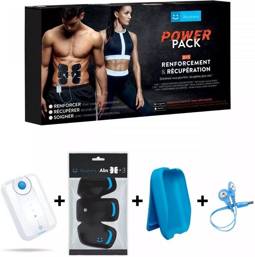 Súprava Power Pack obsahuje elektrostimulátor, klip na opasok, kábel a špeciálne navrhnuté elektródy ABS, ktoré vám pomôžu rozvíjať rast brušných svalov. V aplikácii bola pridaná špeciálna možnosť vytvorená športovými špecialistami, ktorá vám zaistí brušné svaly z ocele!Elektródy Bluetens sú vysoko kvalitné a majú najlepšiu vodivosť. Jedno balenie náhradných elektród obsahuje 3 sady po 2 elektródach pre brušné svaly. Cvičenie s pomocou elektrostimulátora rieši množstvo chronických aj akútnych bolestí bez zaťaženia analgetikami. Pomáha zlepšiť vaše športové výkony a odstraňuje svalové napätie.