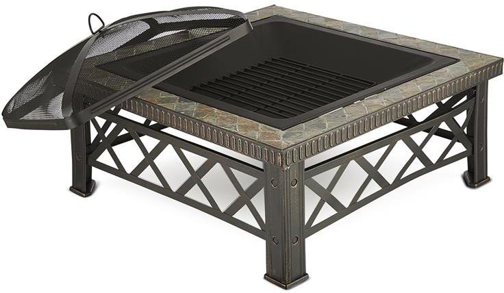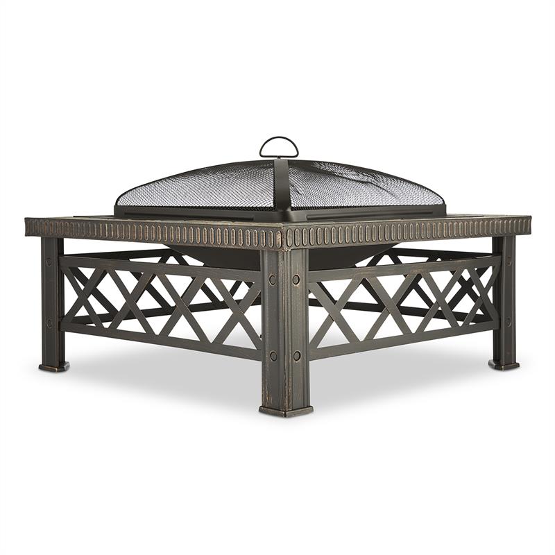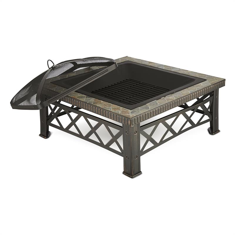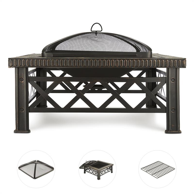 nádoba na oheň, čiernená, dlaždicový dizajn, oceľ, grilovací roštZobraziť viac