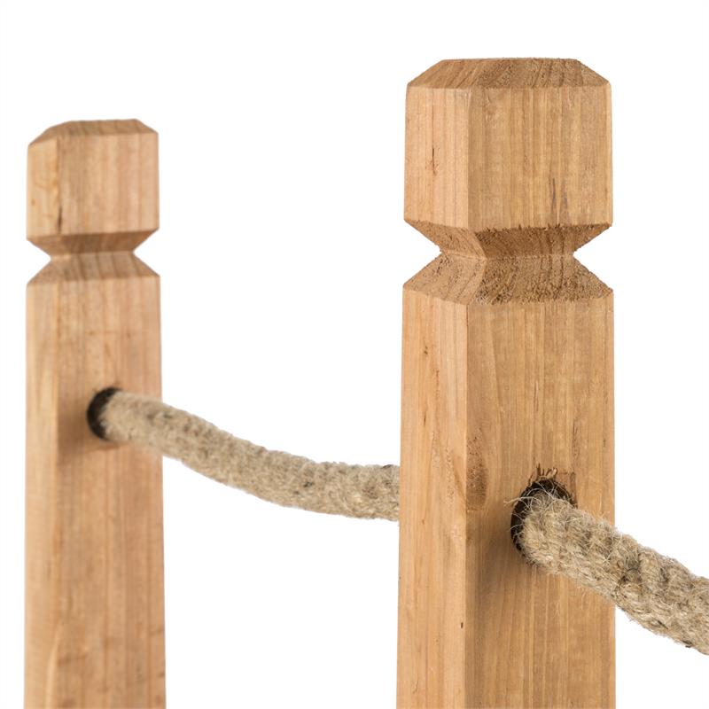 Vyhotovenie z masívneho a stabilného pravého dreva ihličnanov, kompletne so zábradlím z 1,5 cm hrubého lana.