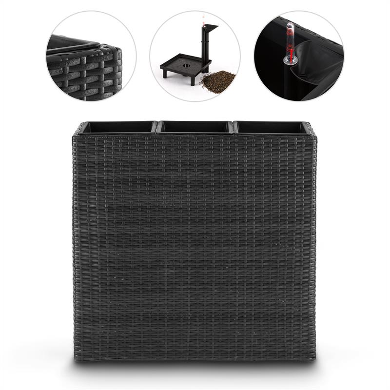 Blumfeldt Triumflor Hydro, antracit, nádoba na kvety trojitá, 80x78x29 cm, zavlažovanieDekoratívny kôš na rastliny pre nekomplikovanú úpravu záhrady, bytu, balkónu alebo terasy s osviežujúcimi zelenými rastlinami.