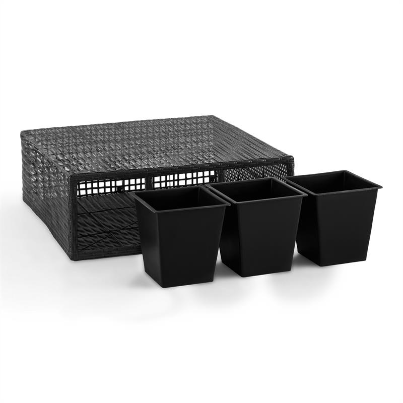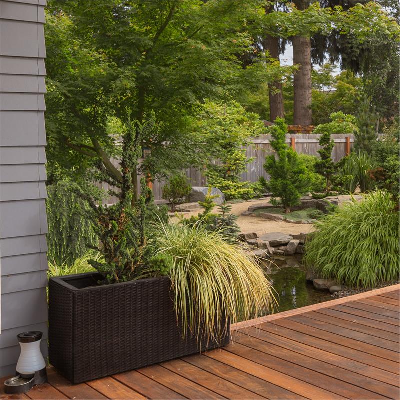 Nádoby na rastliny Blumfeldt Triumflor Hydro z polyratanu sa skvelo hodia pre zdokonalenie záhradného nábytku alebo dekoratívnej fontány a štýlovo ich dopĺňajú s osviežujúcou zeleňou a farebnými kvetmi.