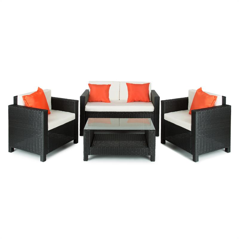 čierna, béžová, oranžová, súprava záhradného nábytku, 4 diely, polyratanZobraziť viac