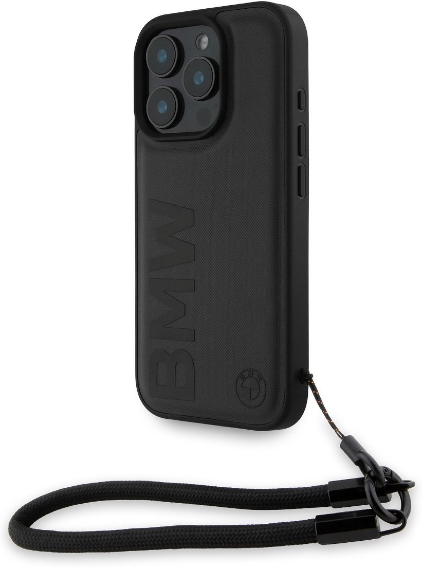 BMW Leather Signature and Strap kryt pre iPhone 16 Pro, čierny