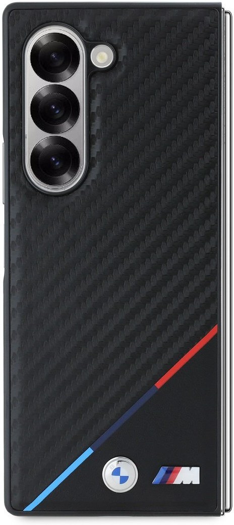 BMW M PU Carbon Tricolor Stripe MagSafe kryt pre Samsung Galaxy Z Fold 6, čierny
