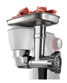 Mlynček na mäso pre perfektnú prípravu rybích a zeleninových terín, mletého mäsa a klobás na všetky spôsoby; excelentné výsledky aj väčšieho množstva mäsa - cca 2 kg / min; kovové sitká s hrúbkou mletia 3 mm, 5 mm a 8 mm