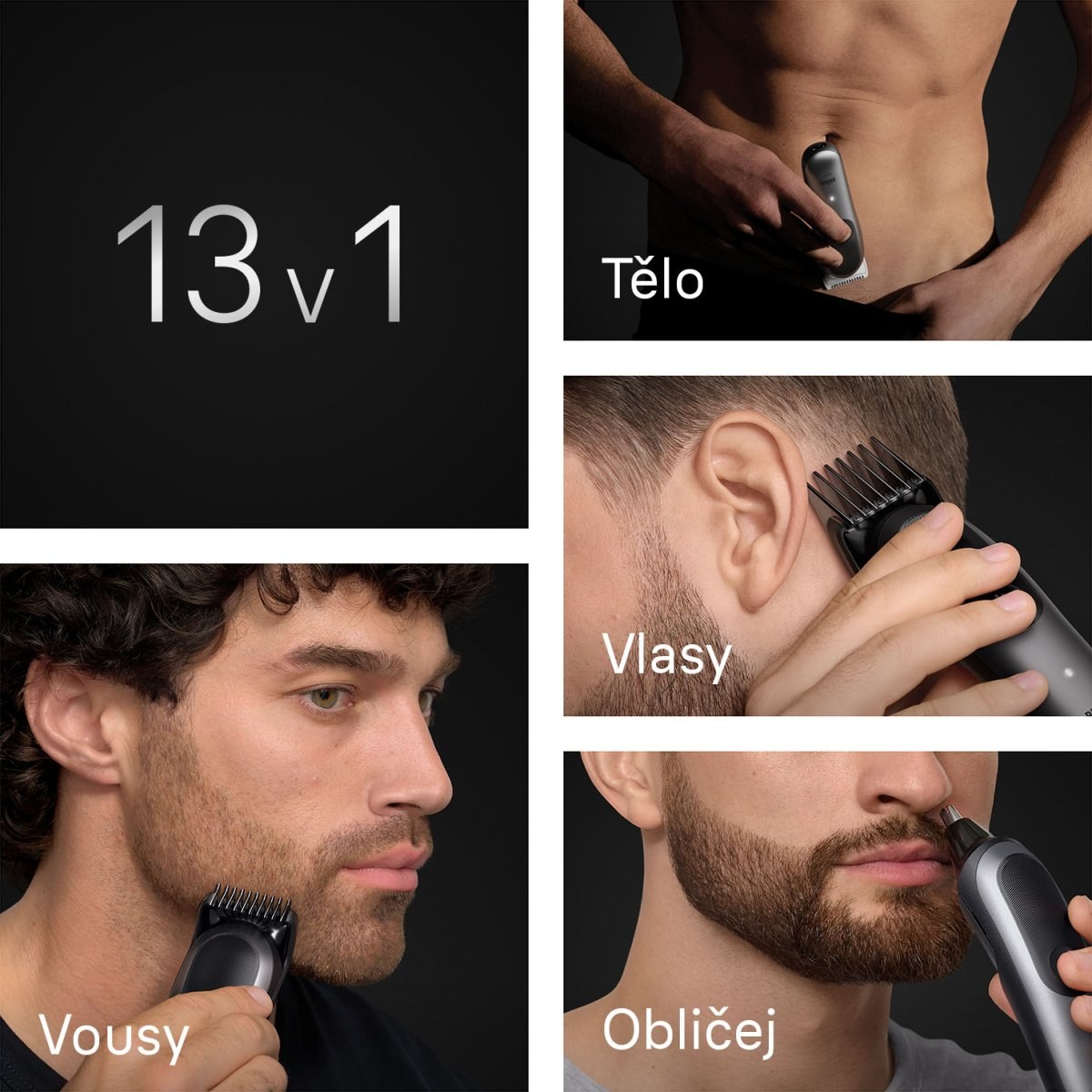 Jedinečná 13 v 1 sada obsahuje všetko, čo potrebujete pre precíznu úpravu fúzov, vlasov, chĺpkov v ušiach a nose a starostlivosť o celé telo. Každý nástavec je premyslene navrhnutý tak, aby vám umožnil dosiahnuť profesionálne výsledky v pohodlí domova.