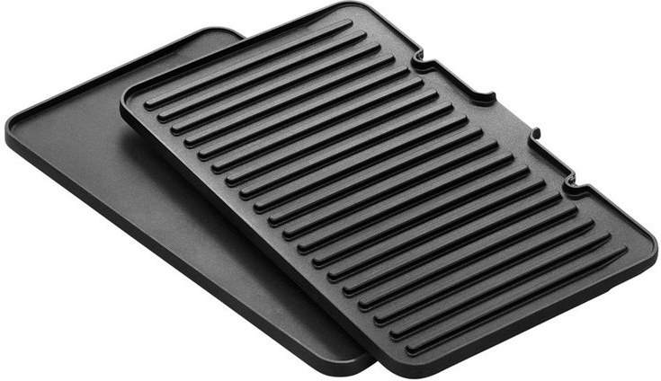 V balení nájdete súpravu rebrovanej a hladkej grilovacej platničky. Oba typy majú nepriľnavý povrch a môžete ich medzi sebou jednoducho vymieňať.