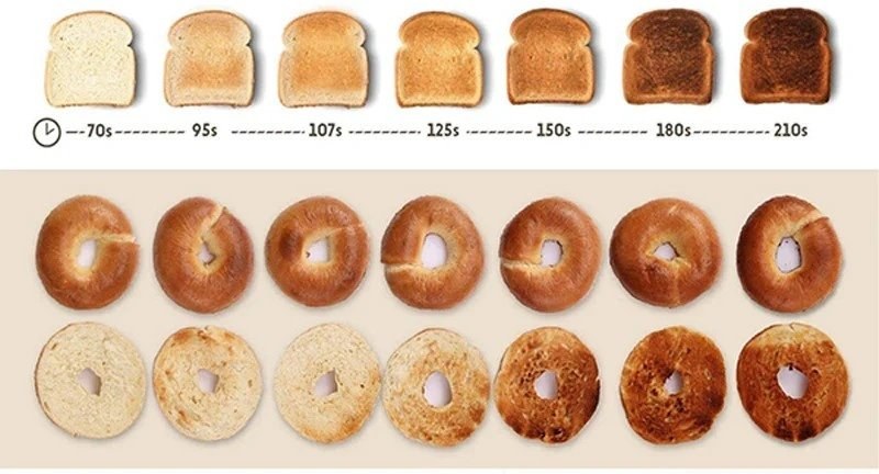 7 úrovní opečenia pre 5 základných funkcií s kontrolkami LED. Okrem opekania klasického pečiva, ako sú bagely, chlieb, vafle a múčniky, môžete tiež ohrievať a rozmrazovať. Uspokojí všetky vaše každodenné potreby v oblasti hriankovania.