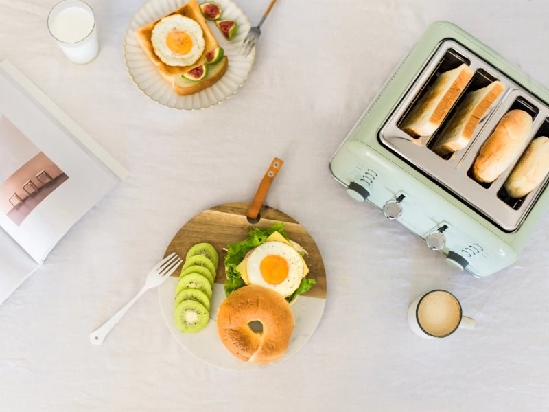 hriankovača na 4 plátky, ktorý má extra široké otvory na opekanie rôznych bagielov a muffinov