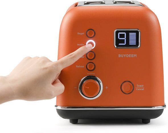 Jednoduché použitieJedno otočenie a jedno stlačenie šetrí čas a námahu. Tlačidlá s kontrolkou LED a zrozumiteľný ovládací prvok režimu. Naštartujte deň dokonalou hriankou z hriankovača BUYDEEM. Retro kovový hriankovač na 2 hrianky s extra širokými otvormi na opekanie rôznych bagelov a muffinov. Vychutnajte si teplý chlieb, bagel alebo ho použite na prípravu chutného sendviča.