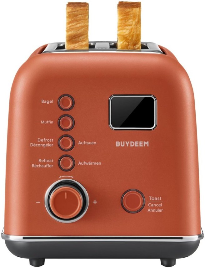 Buydeem DT730E, Automatický kovový hriankovač na 2 plátky, farba koi červená