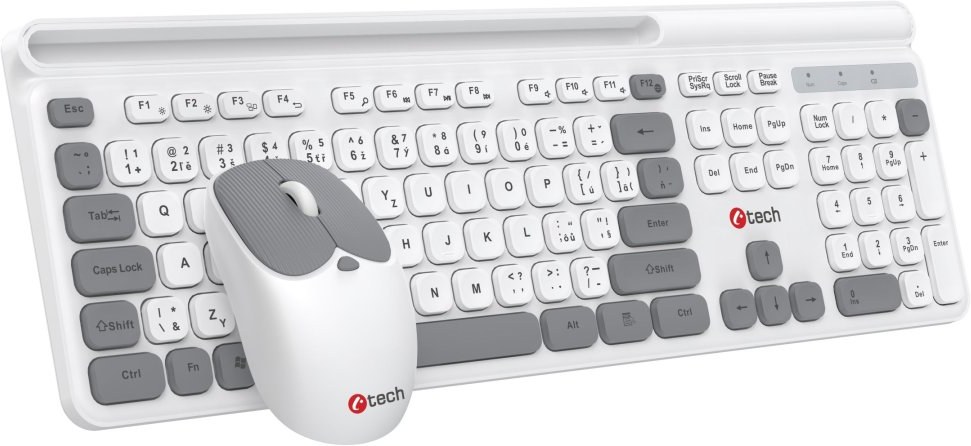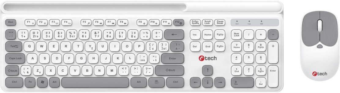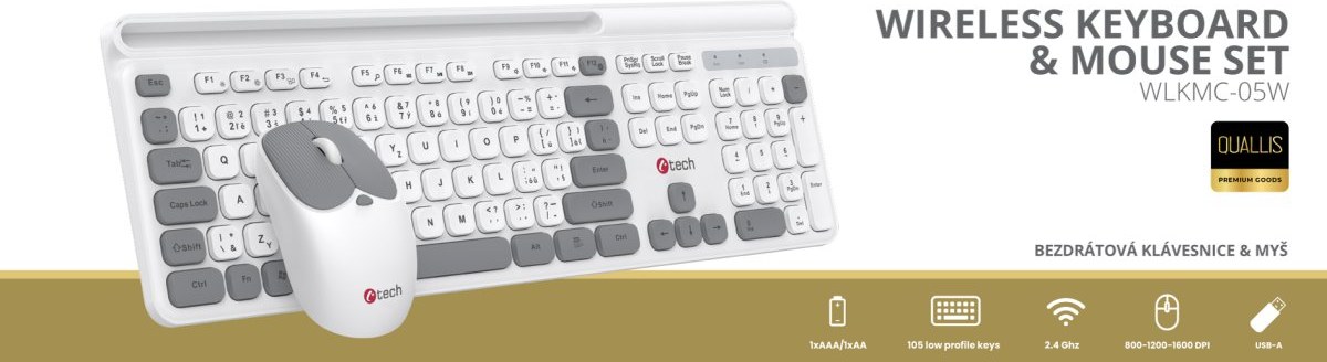 C-Tech Quallis WLKMC-05, bezdrôtový combo set klávesnica a myš, USB, CZ/SK, biely