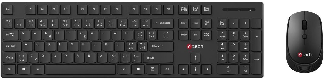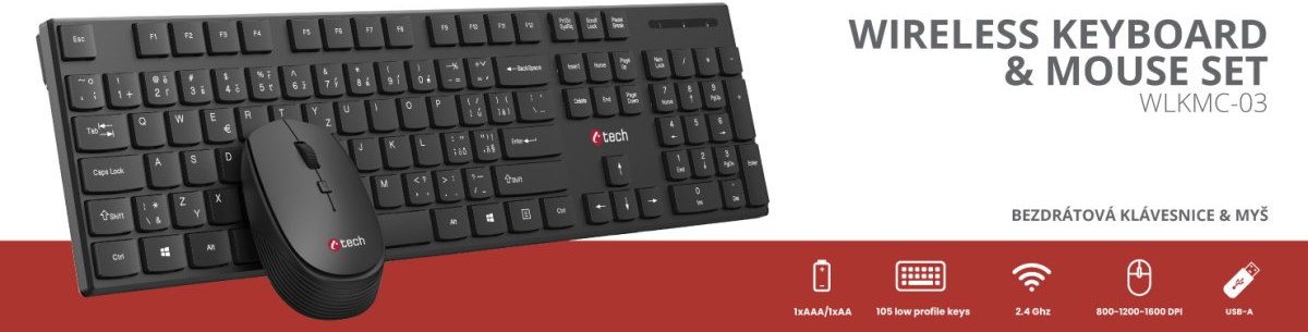C-Tech WLKMC-03, bezdrôtový combo set klávesnica a myš, USB, CZ/SK, čierny