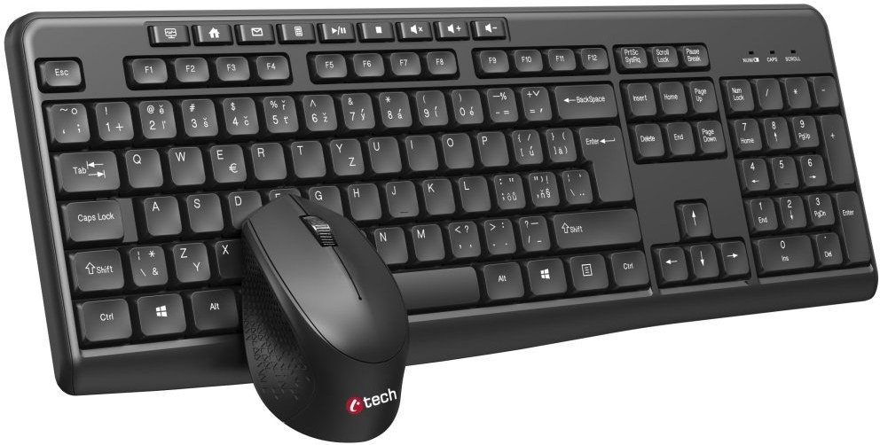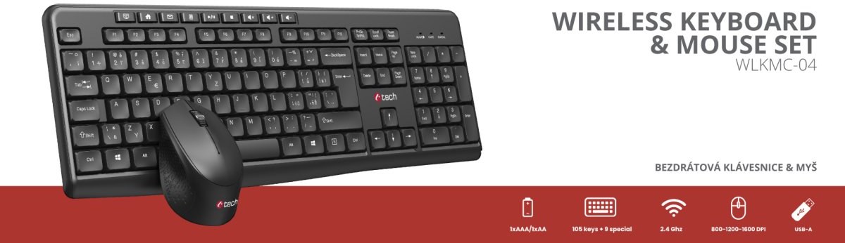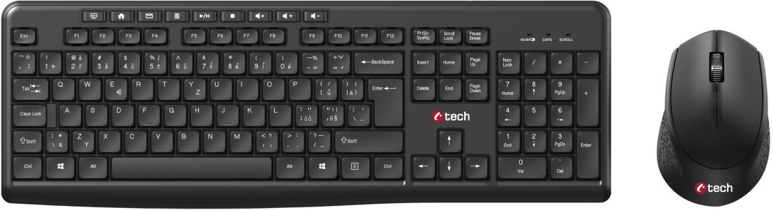 C-Tech WLKMC-04, bezdrôtový combo set klávesnica a myš, USB, CZ/SK, čierny