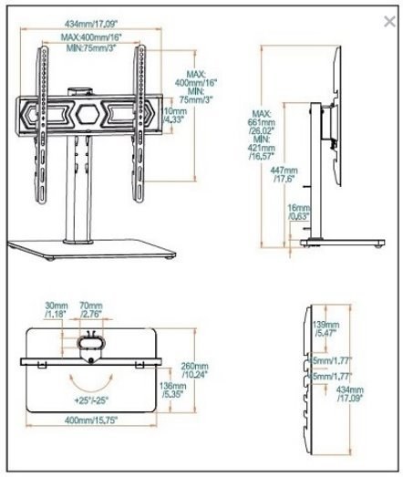 Tento univerzálny TV stojan (32"-55") je perfektným riešením pre LCD televízory od 32 do 55 palcov s maximálnou nosnosťou 40 kg. Vďaka nastaveniu uhla náklonu ±25° si môžete prispôsobiť polohu obrazovky svojim potrebám a zaistiť tak optimálne pozorovacie uhly. Stojan je vybavený nastaviteľnými úchytmi VESA, ktoré zodpovedajú rozmerom od 75 mm do 400 mm na výšku aj šírku, čo zaisťuje všestrannú inštaláciu. Súčasťou balenia sú montážne skrutky a vodítka káblov, ktoré umožňujú úhľadné a usporiadané vedenie káblov. Elegantná čierna farba sa navyše bez problémov hodí do akéhokoľvek interiéru.