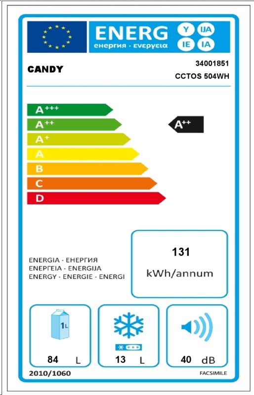 Candy CCTOS 504 WH, chladnička jednodverová monoklimatická