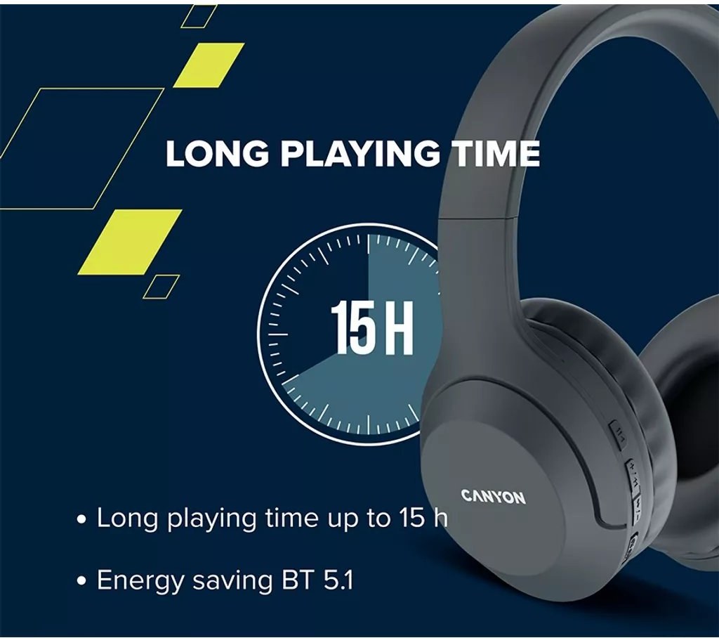 Canyon BTHS-3, bezdrôtové slúchadlá, tmavosivé