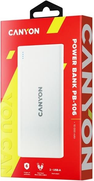 Canyon CNE-CPB1006W, 10 000 mAh, Powerbanka, biela