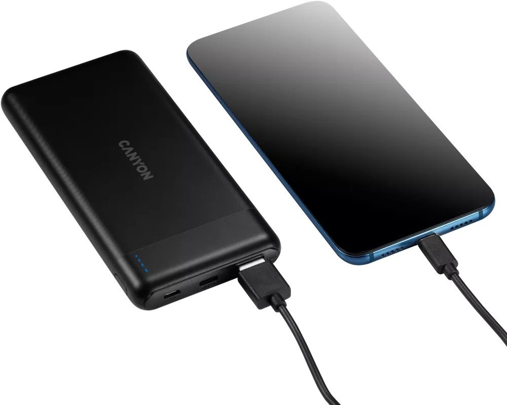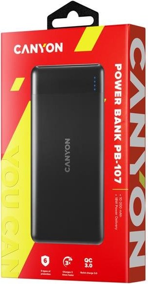 POWERBANKA S RÝCHLYM NABÍJANÍM 10 000 MAH PB-107Táto power banka od Canyonu je navrhnutá tak, aby vám pomohla míňať menej na nabíjačky s rôznymi typmi konektorov a zároveň naplno využívať výhody moderných technológií. Powerbanka má dva sloty – USB-A a USB-C, čo umožňuje súčasne nabíjať dve zariadenia s rôznymi káblovými konektormi. Svoje zariadenia môžete nabíjať pomocou kábla Micro-USB alebo USB-C. Okrem toho je batéria vybavená funkciou rýchleho nabíjania. Pokročilá technológia chráni dobíjacie prístroje pred skratom, prehriatím, prepätím, nadprúdom, prebitím a nadmerným vybitím. Kapacita batérie vystačí na tri až štyri nabitia moderného smartfónu. Maximálna funkčnosť a nič zbytočné!