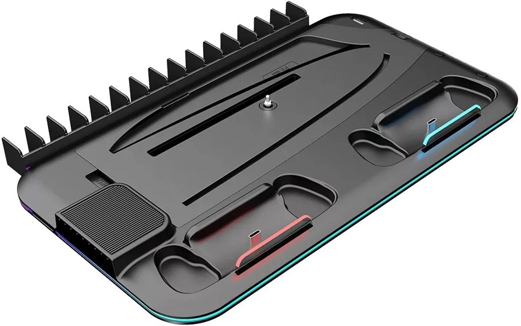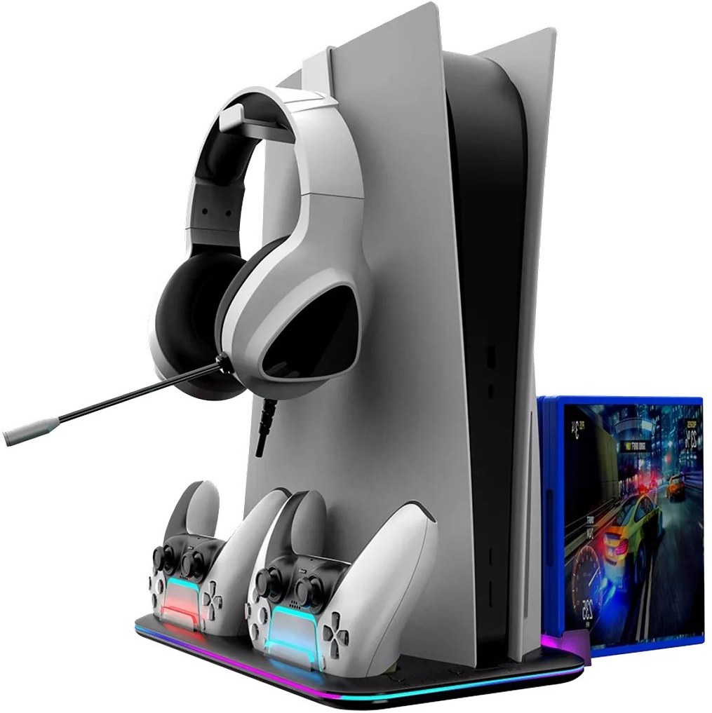 integrované chladenie, nabíjanie dvoch PS5 ovládačov s LED indikáciou, RGB podsvietenie