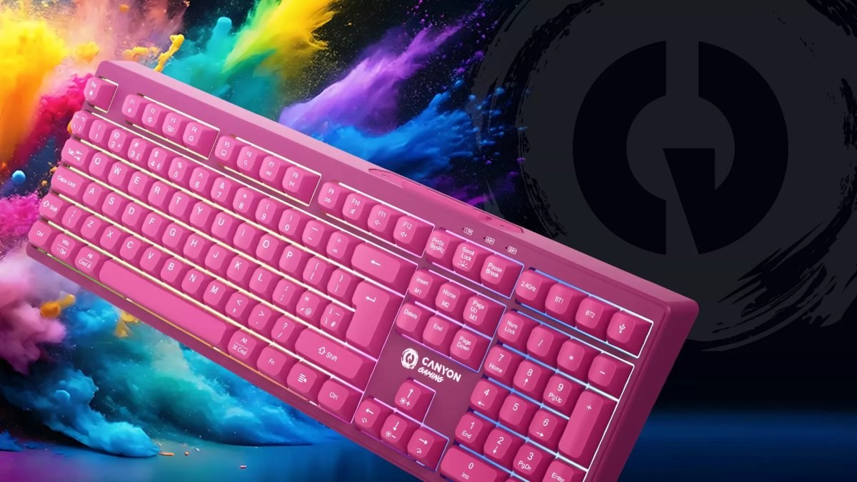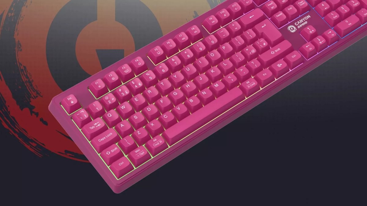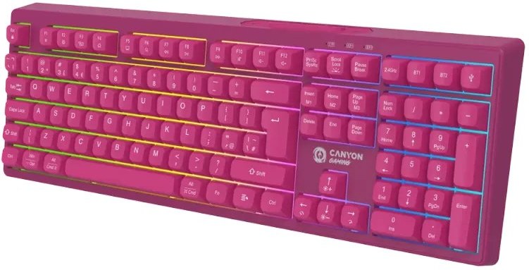 Canyon Fortnax GKW-2, bezdrôtová membrábová herná klávesnica, US, ružová