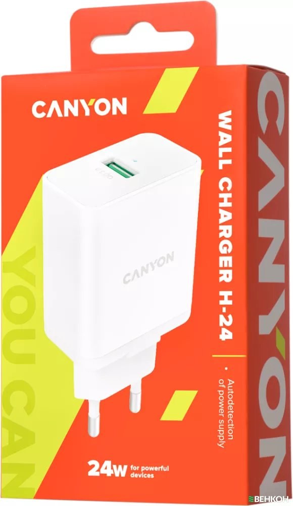 Canyon H-24, vysokorýchlostná univerzálna nabíjačka, 24W, biela