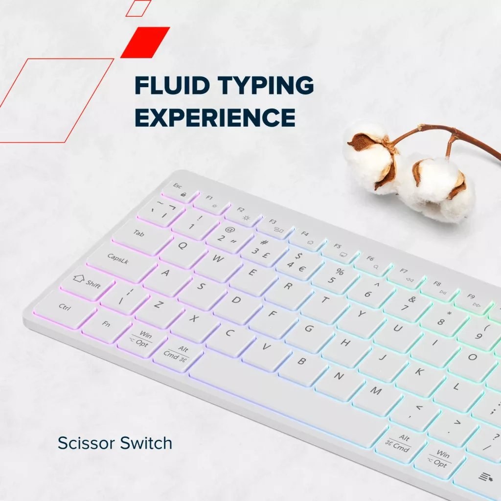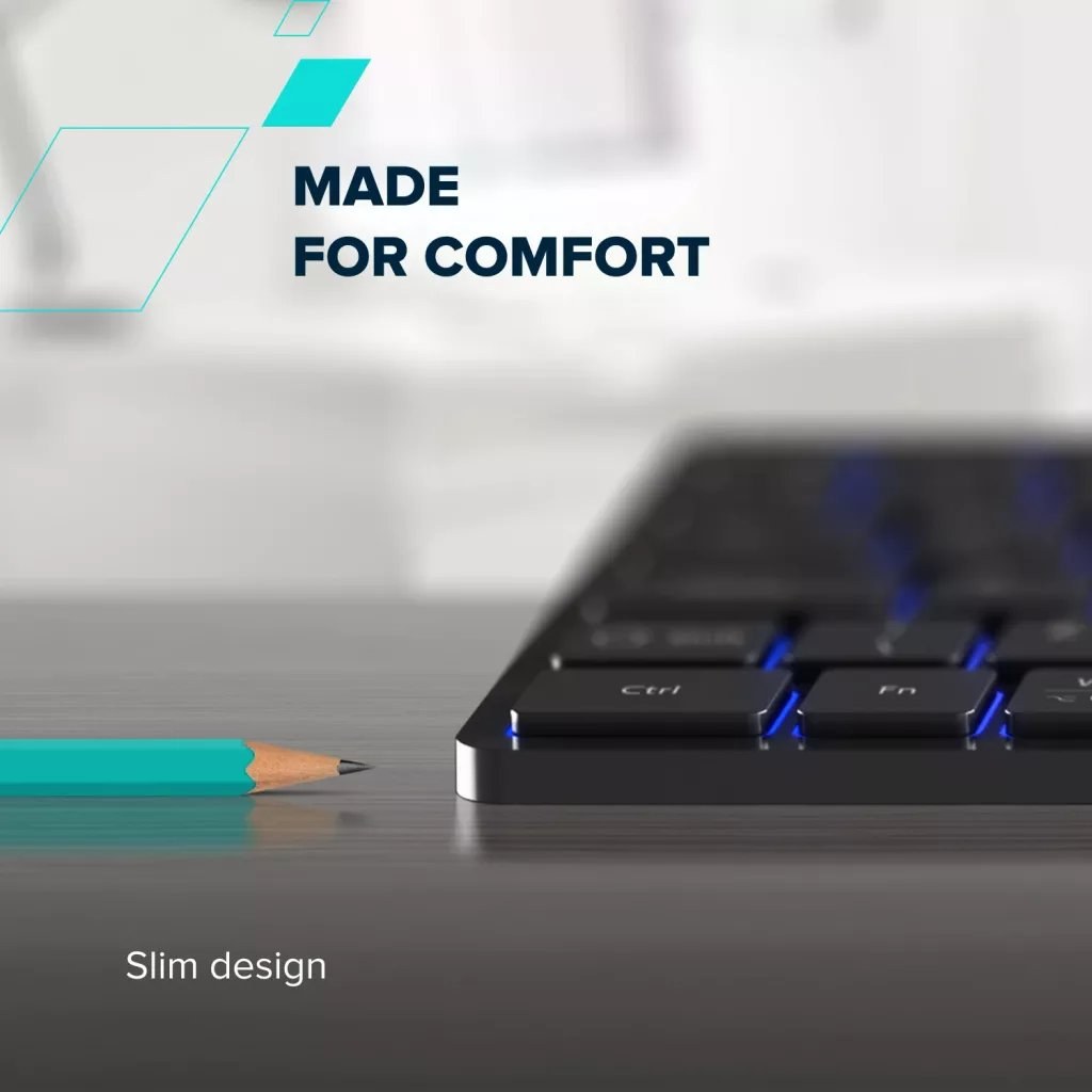 Dizajn: Ultra tenký profil pre ergonomické a pohodlné písanie.
