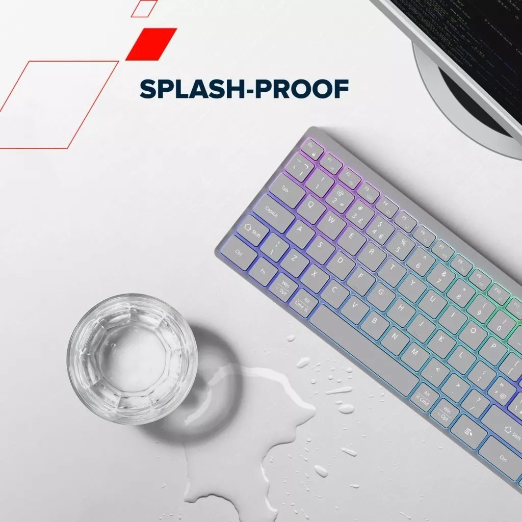 Odolnosť voči vode: Splash-proof konštrukcia chráni klávesnicu pred náhodnými rozliatiami.