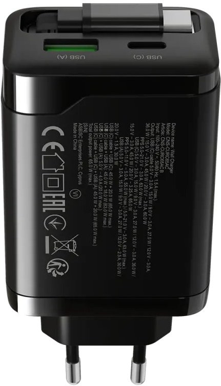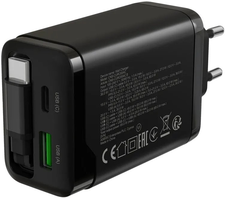 USB-C nabíjačka s káblom, maximálny výkon 65 W, dĺžka kábla 0,6 mZobraziť viac
