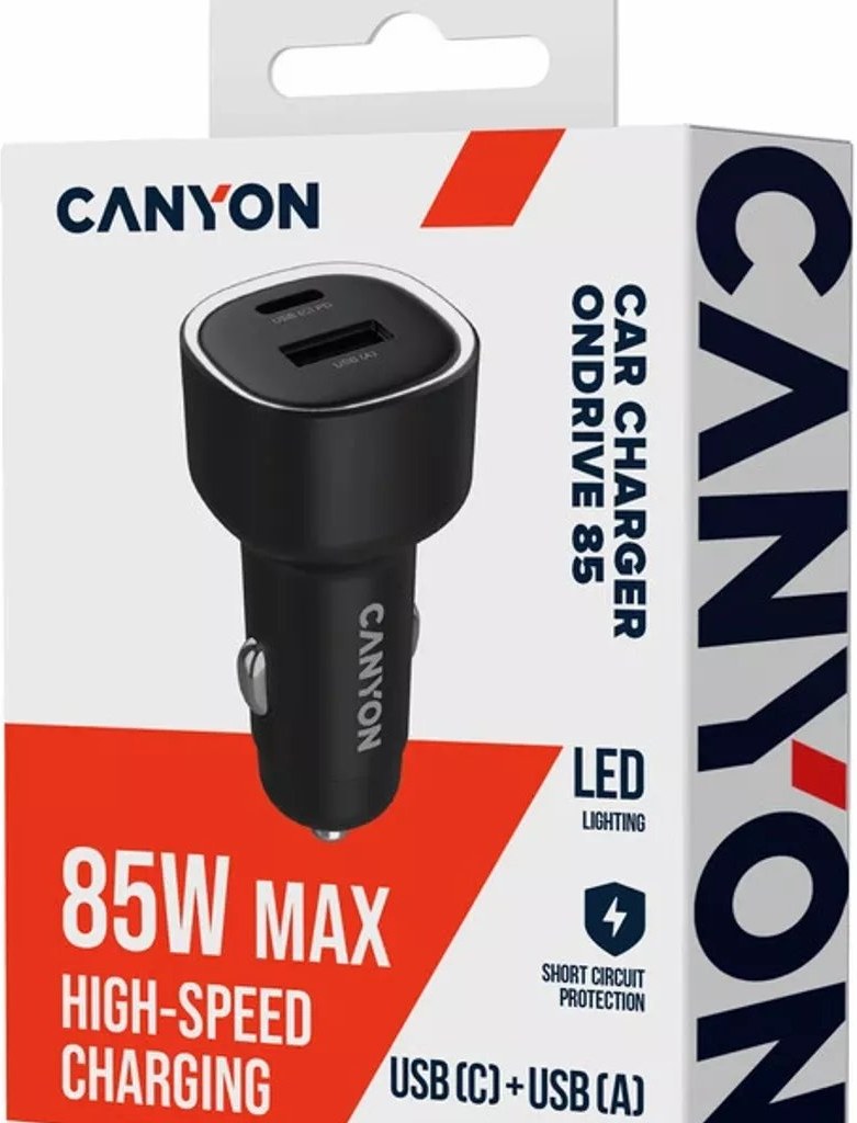 Canyon OnDrive 85, univerzálna autonabíjačka, 1x USB-C, 1x USB-A, rýchle nabíjanie, výkon 85 W