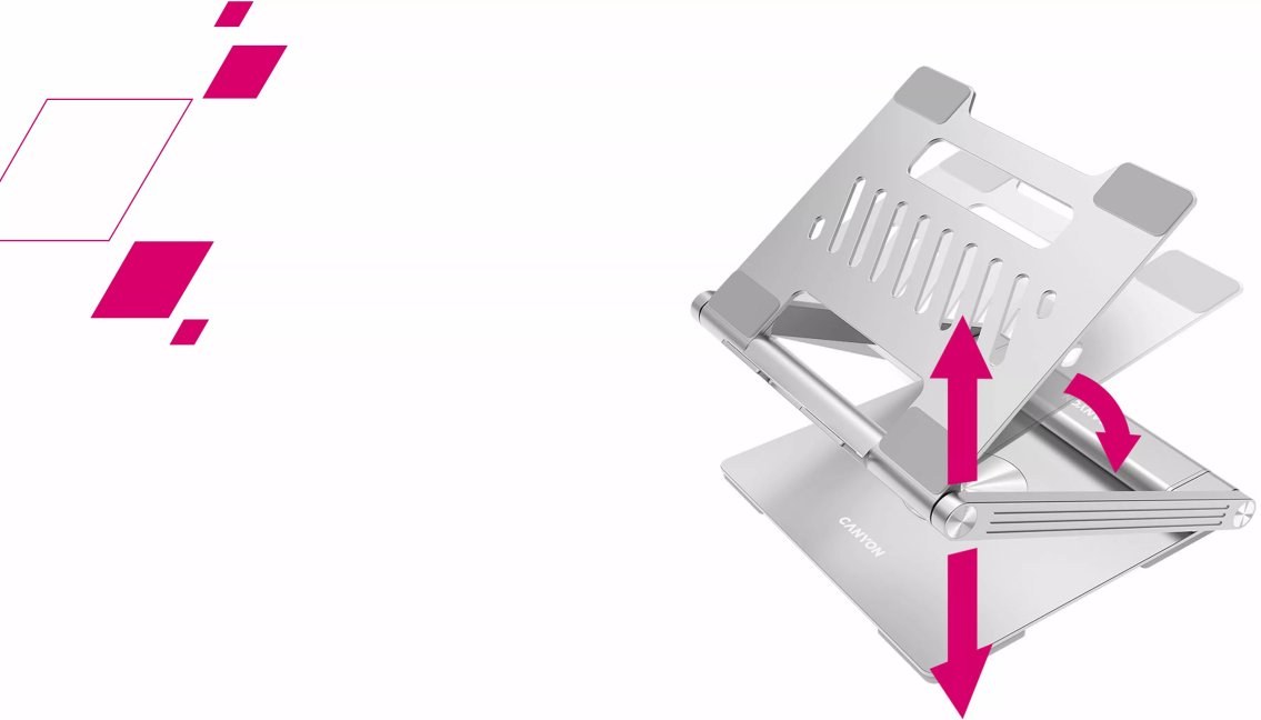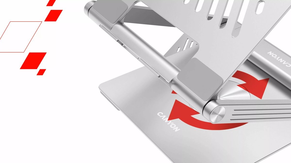 Canyon OnStand 2 je viac než len stojan na notebook – je to komplexné riešenie pre pohodlnú a efektívnu prácu. Vďaka 360° otočnej základni umožňuje jednoduché zdieľanie obrazovky počas stretnutí, nastavenie ideálneho uhla pohľadu alebo rýchle prepínanie medzi úlohami bez nutnosti premiestňovania zariadenia. Jeho skladací dizajn zaručuje jednoduché prenášanie, či už pracujete z domu, kancelárie alebo na cestách.