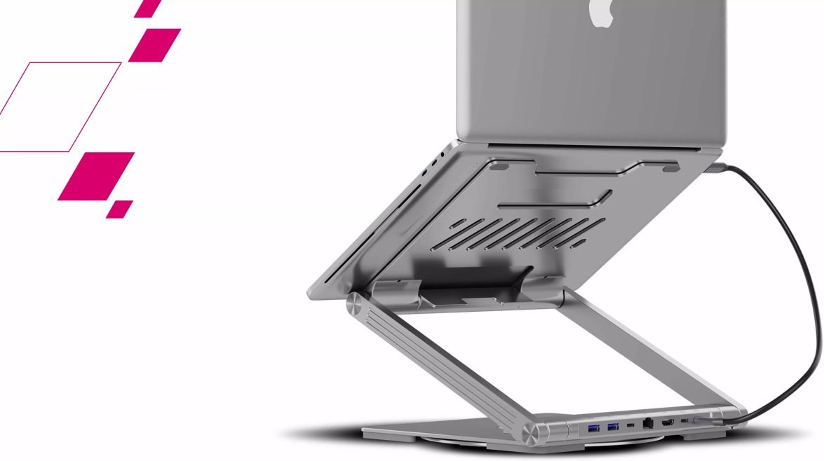 360° otočná základňa pre flexibilné nastavenie, skladací a prenosný dizajn, magnetický USB-C hub