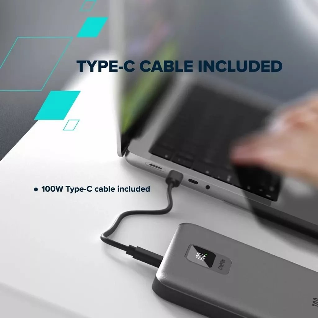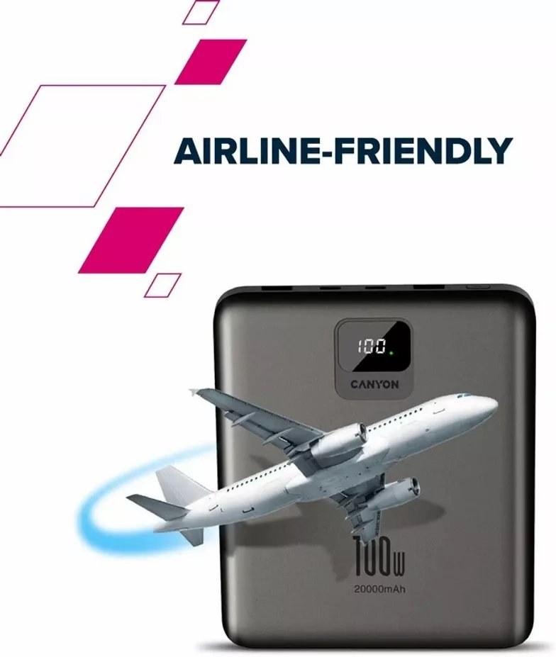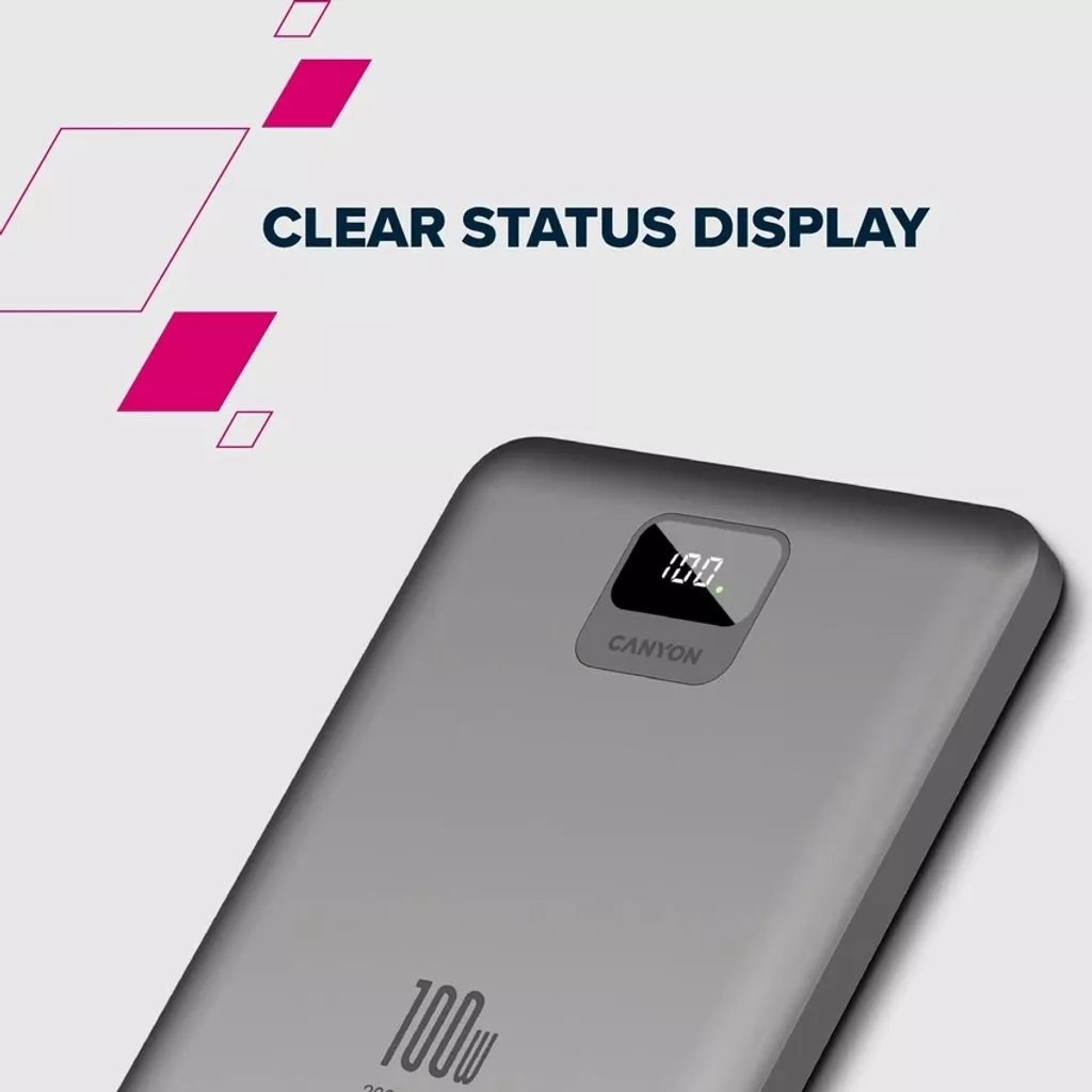 Canyon PB-2008, Powerbanka, Li-Pol, PD 100W, 20 000 mAh, tmavosivá, (rozbalené)