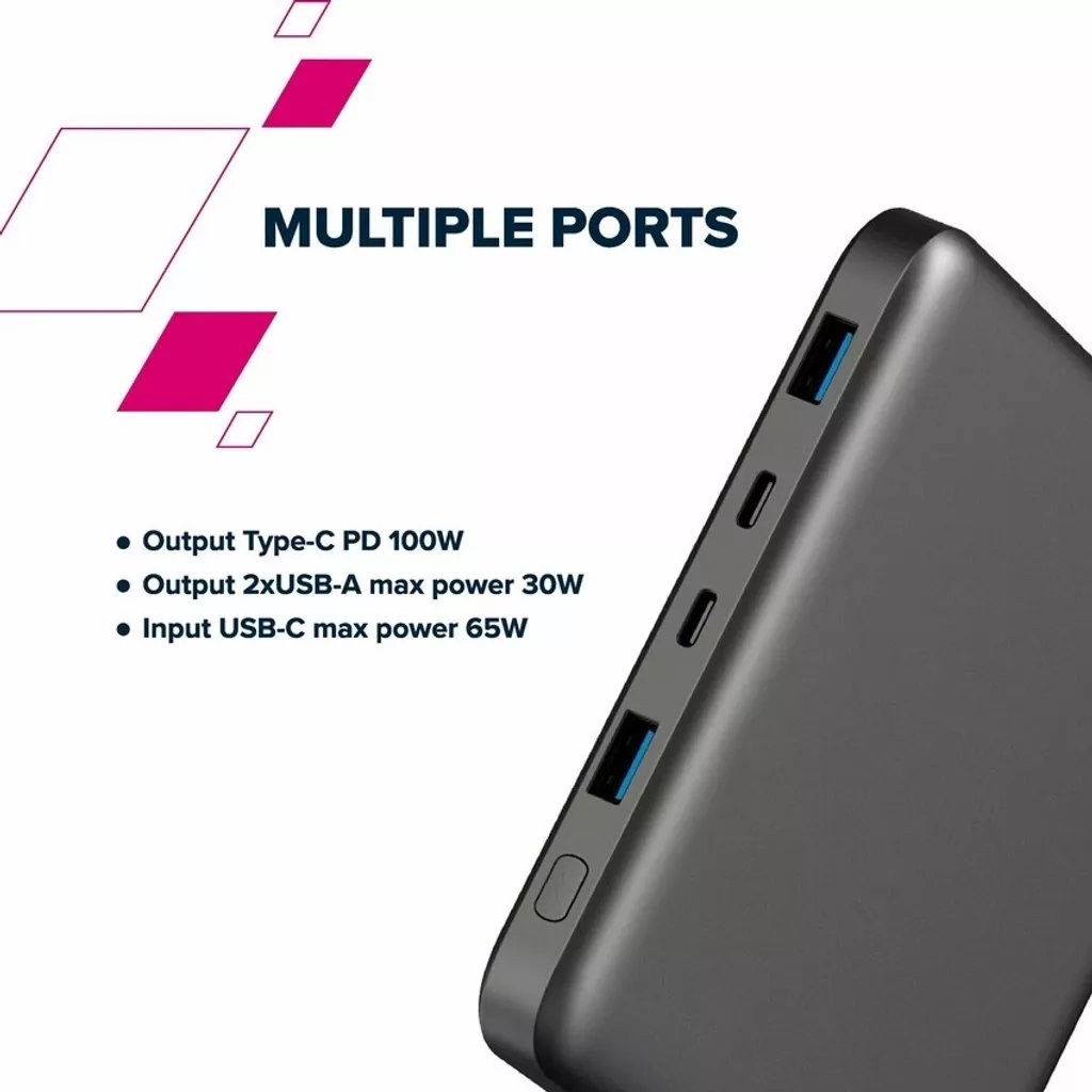 power bank, maximálny výkon 100 W, kapacita 20 000 mAh, USB-A, 2x USB-C, USB-C, 2x USB-AZobraziť viac