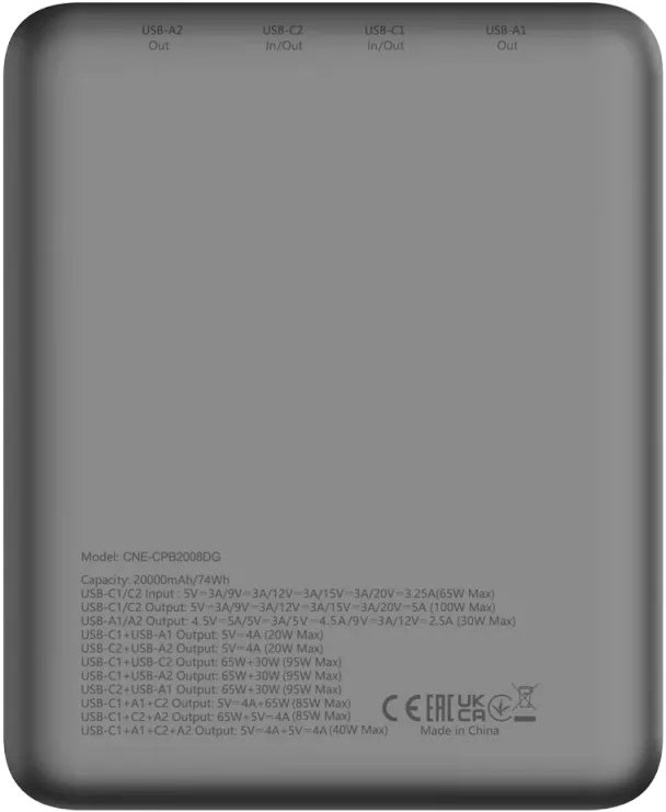 Powerbanka CNE-CPB2008DG nie je len zdrojom energie; je to celá elektráreň. Vďaka obojsmerným funkciám rýchleho nabíjania môžete nielen rýchlo nabíjať svoje zariadenia, ale aj dobíjať samotnú powerbanku v rekordnom čase. Už žiadne hodiny čakania na dobitie batérie. Vychutnajte si flexibilitu nabíjania vašich zariadení alebo powerbanky, kedykoľvek to potrebujete, aby ste boli vždy pripravení na ďalšie dobrodružstvo.