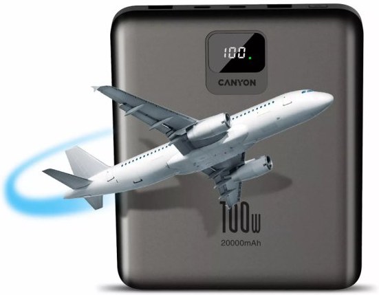 Canyon PB-2008, Powerbanka, Li-Pol, PD 100W, 20 000 mAh, tmavosivá