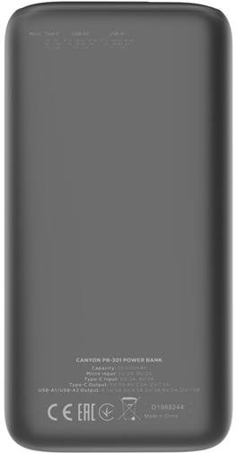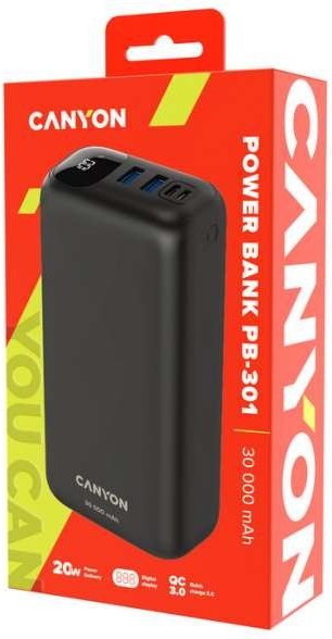 Canyon PB-30, 30 000 mAh, Powerbanka, 22,5 W, čierna