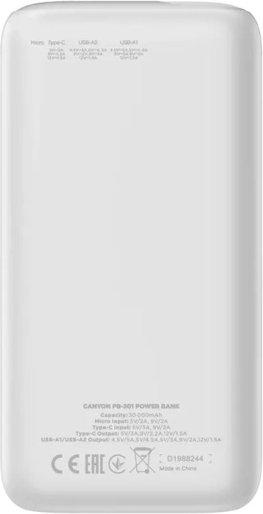 Canyon PB-301, Powerbanka, 30.000 mAh, biela